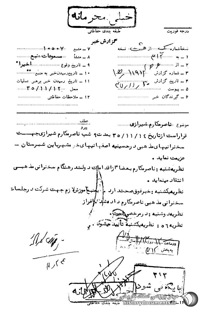 آیتالله العظمی ناصر مکارم شیرازی به روایت اسناد ساواک - کتاب دوم صفحه 388