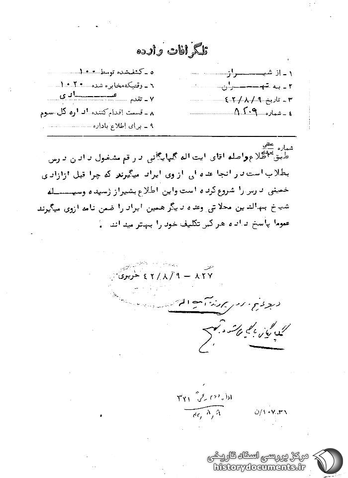 در جریانیم روی پرونده آیت اله گلپایگانی بایگانی شود.