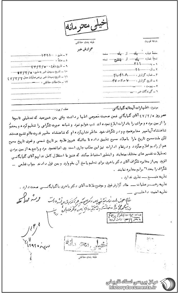 عصر روز 5 /2 /47 آقای گلپایگانی ضمن