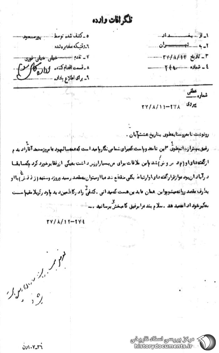 رونوشت نامه روستا به علوی به تاریخ هشتم آبان1