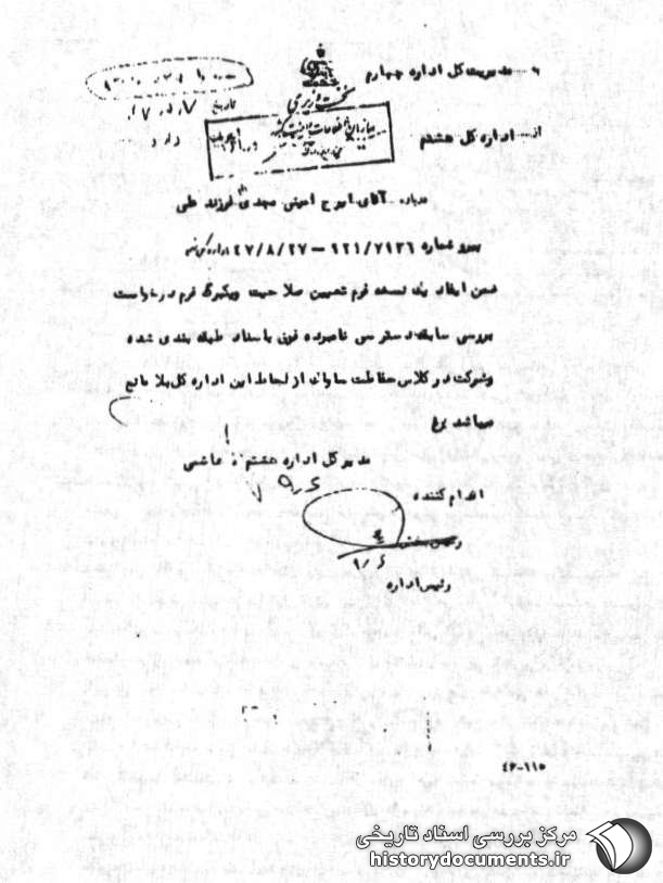 از: اداره کل هشتم تاریخ گزارش: 7 /9 /47