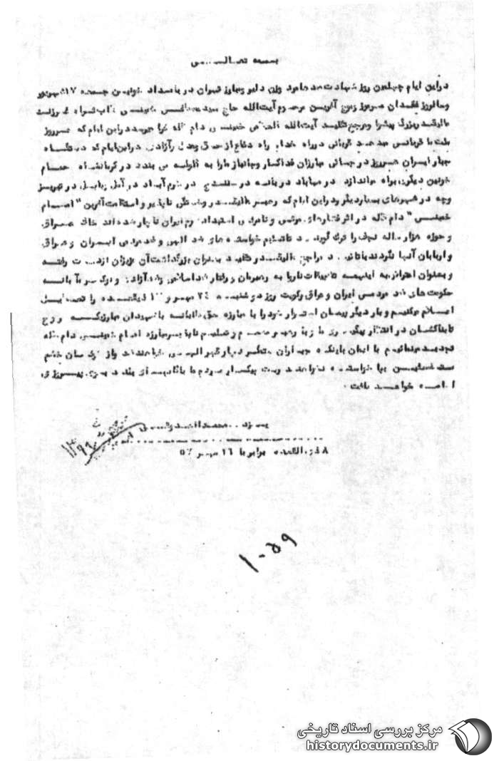 در این ایام چهلمین روز شهادت صدها مرد و زن دلیر و مبارز تهران در بامداد خونین جمعه ۱۷ شهریور و سالروز فقدان مرموز و موج آفرین مرحوم آیتالله حاج سید مصطفی خمینی طاب ثراه فرزند عالیقدر بزرگ پیشوا و مرجع تقلید آیتالله العظمی خمینی دام ظله فرا میرسد. در این ایام که هر روز ملت ما قربانی میدهد قربانی در راه خدا، راه دفاع از حق و عدل و آزادی در این ایام که دستگاه جبار ایران هر روز در جایی مبارزان فداکار و جانباز ما را به گلوله میبندد در کرمانشاه حمام خونین دیگری به راه میاندازد در مهاباد در بانه در سنندج۱، در خرم آباد، در آمل و بابل۲ در تبریز و چه در شهرهای بسیار دیگر و در این ایام که رهبر عالیقدر و خستگی ناپذیر و استقامت آفرین «امام خمینی» دام ظله در اثر فشارهای مرئی و نامرئی استبداد شوم ایران ناچار شدهاند خاک عراق و حوزه هزار ساله نجف را ترک گویند تا تسلیم خواستههای ضد الهی و ضد مردمی ایران و عراق و اربابان آنها نگردند با تأیید مراجع عالیقدر تقلید به عنوان بزرگداشت آن عزیزان از دست رفته و به عنوان اعتراض به این همه تضییقات ناروا به رهبرمان و رفتار ضد اسلامی و ضد آزادی و نوکر مآبانه حکومتهای ضد مردمی ایران و عراق و کویت روز دوشنبه ۲۴ مهر و ۱۳ ذیقعده را تعطیل اعلام میکنیم و بار دیگر پیمان استوار خود را با مبارزه حق طلبانه با شهیدان مبارزی که روح تابناکشان در انتظار پیگیری ما و با رهبر مصمم و تسلیم ناپذیر مبارزه، امام خمینی دام ظله تجدید مینماییم. با ایمان به این که جباران ستمگر دچار قهر الهی خواهند شد و از خشم مستضعفین به پا خاسته نخواهند رست. پیکار مردم ما با گامهای بلند به سوی پیروزی ادامه خواهد یافت.۳