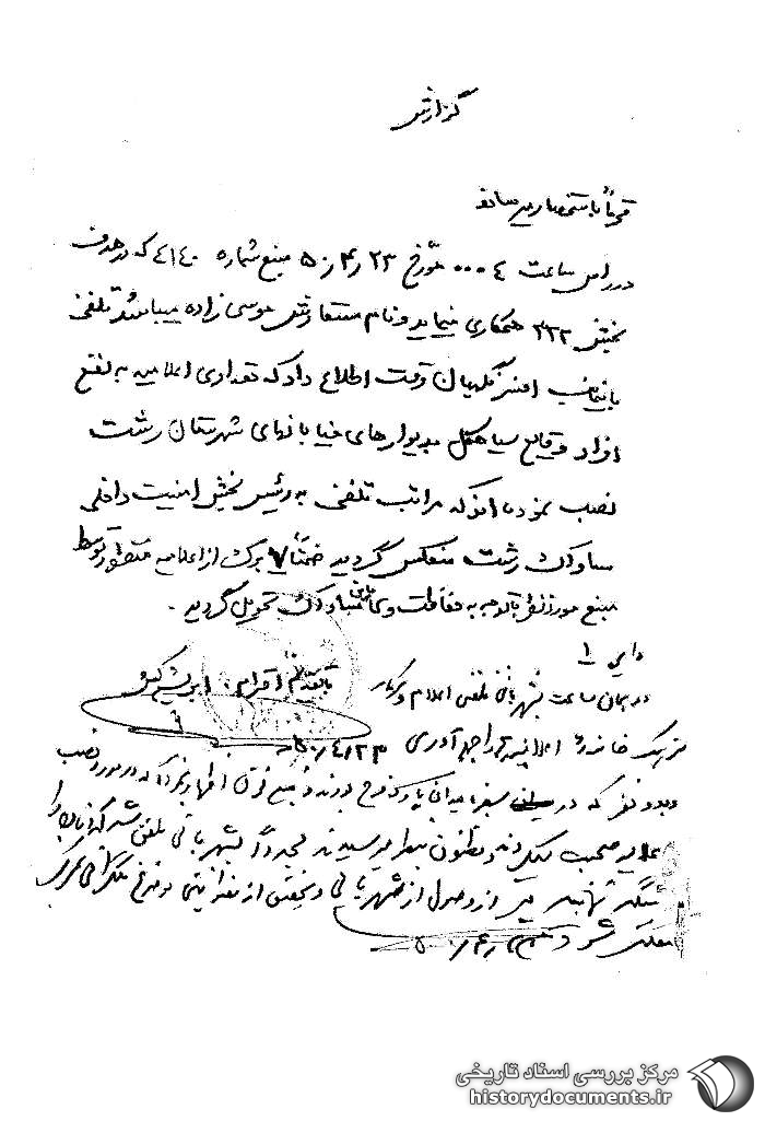 نموده اند که مراتب تلفنی به رئیس بخش امنیت داخلی ساواک رشت