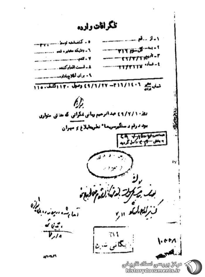 روز 10 /7 /49 عبدالرحیم ربانی شکرانی (شیرازی) که مدتی متواری بود