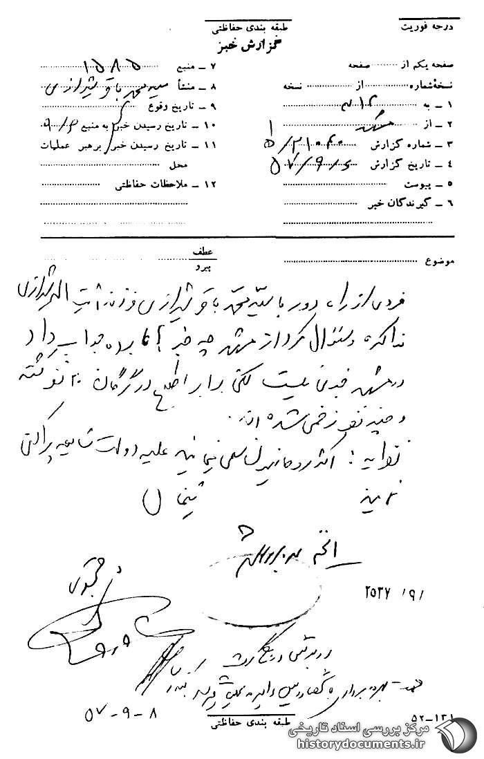 در بولتن درج گردید. جهت بهرهبرداری به استحضار رئیس دایره عملیات میرسد. کندری 8 /9 /57