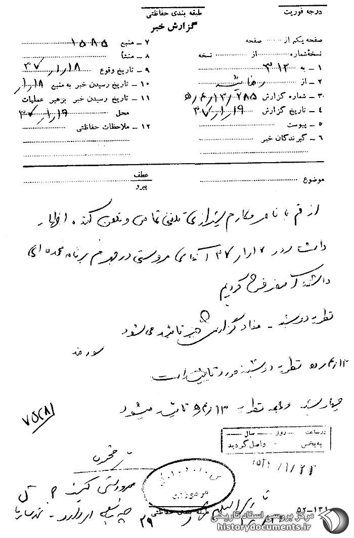 1. براساس این دستور، طی شماره 439 /312- 21 /1 /37 به ساواک فارس نوشته شد: «نسبت به شناسائی مروستی و روشن نمودن وضعیت وی و اینکه چه برنامهای داشته اقدام نتیجه اعلام. ثابتی» بخش ضمائم