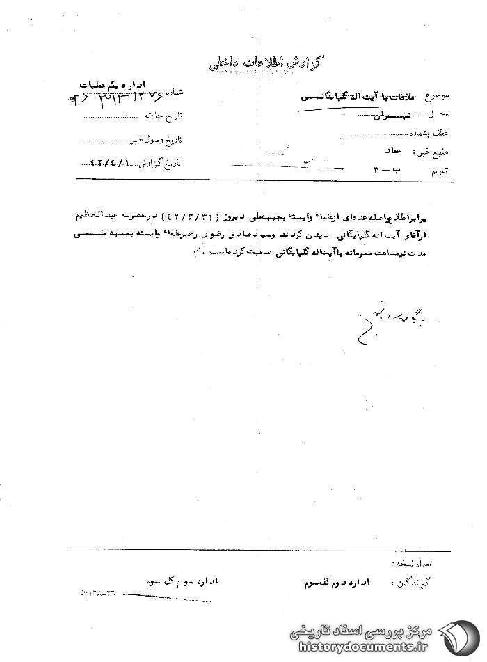 1ـ همانگونه که معروف است و از مطالعه اسناد این مجموعه نیز استفاده می شود، حضرت آیت اله گلپایگانی در وقایع سال
