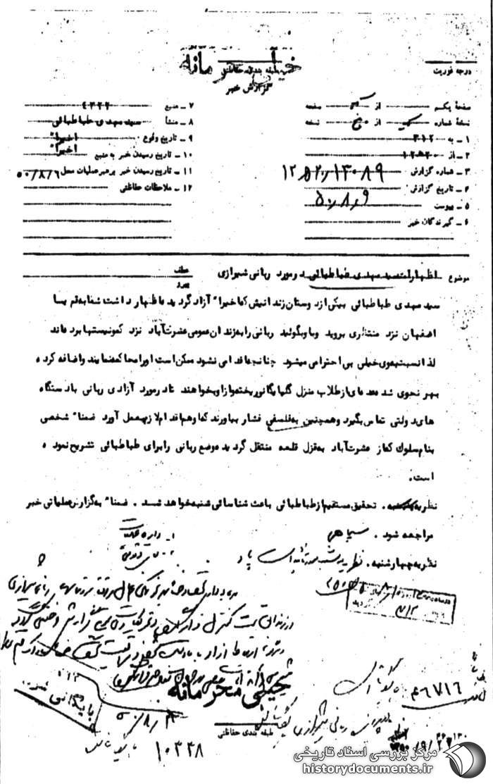 بهره برداری شود و ضمنا بهر نحو ممکن اعمال و رفتار و تماسهای ربانی شیرازی در زندان تحت