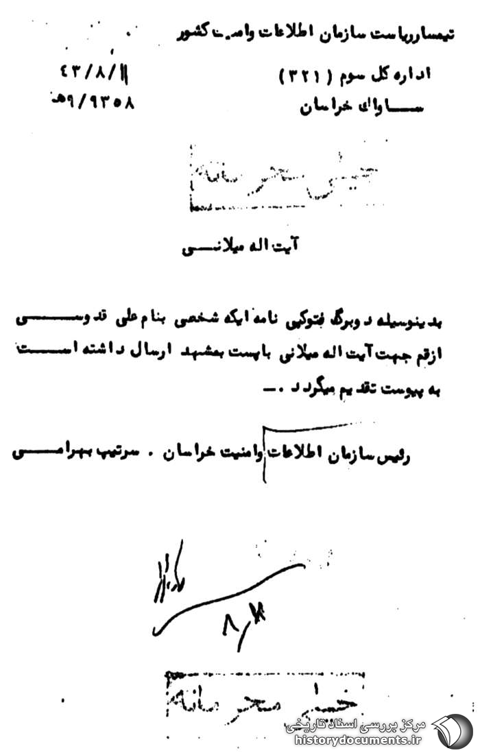 فرستنده : ساواک خراسان شماره : 9358 /9 ه