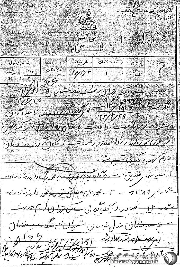 تلگراف شماره 4826 /20 الف ـ 29 /1 /44