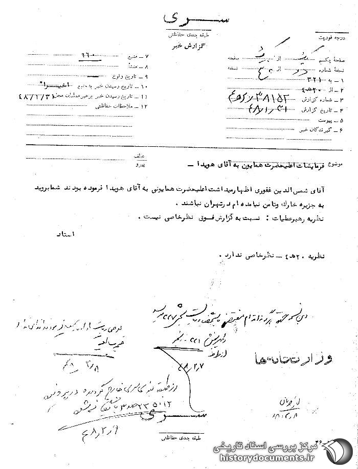 موضوع : فرمایشات اعلیحضرت همایون به آقای هویدا