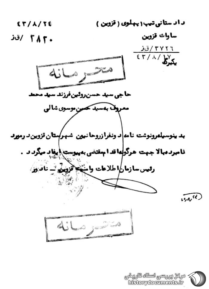 شماره: 3820 / قز تاریخ:24 /8 /1343