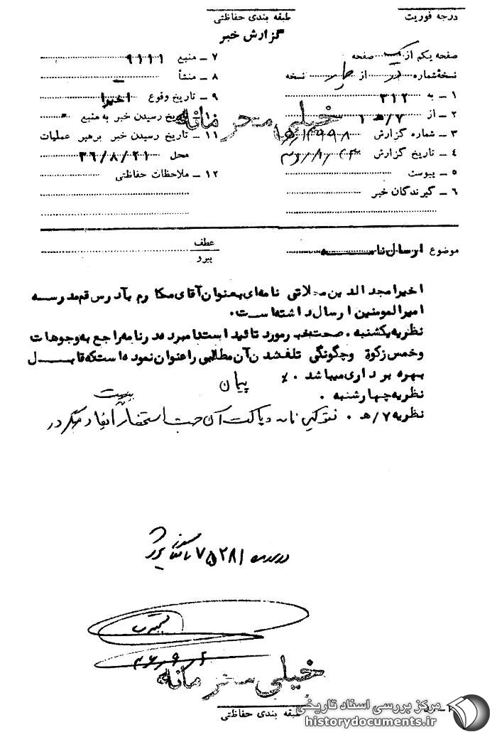 1. نامه مورد اشاره در سوابق موجود نبود.