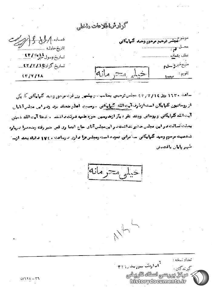 موضوع : مجلس ترحیم مرحوم وحید گلپایگانی1