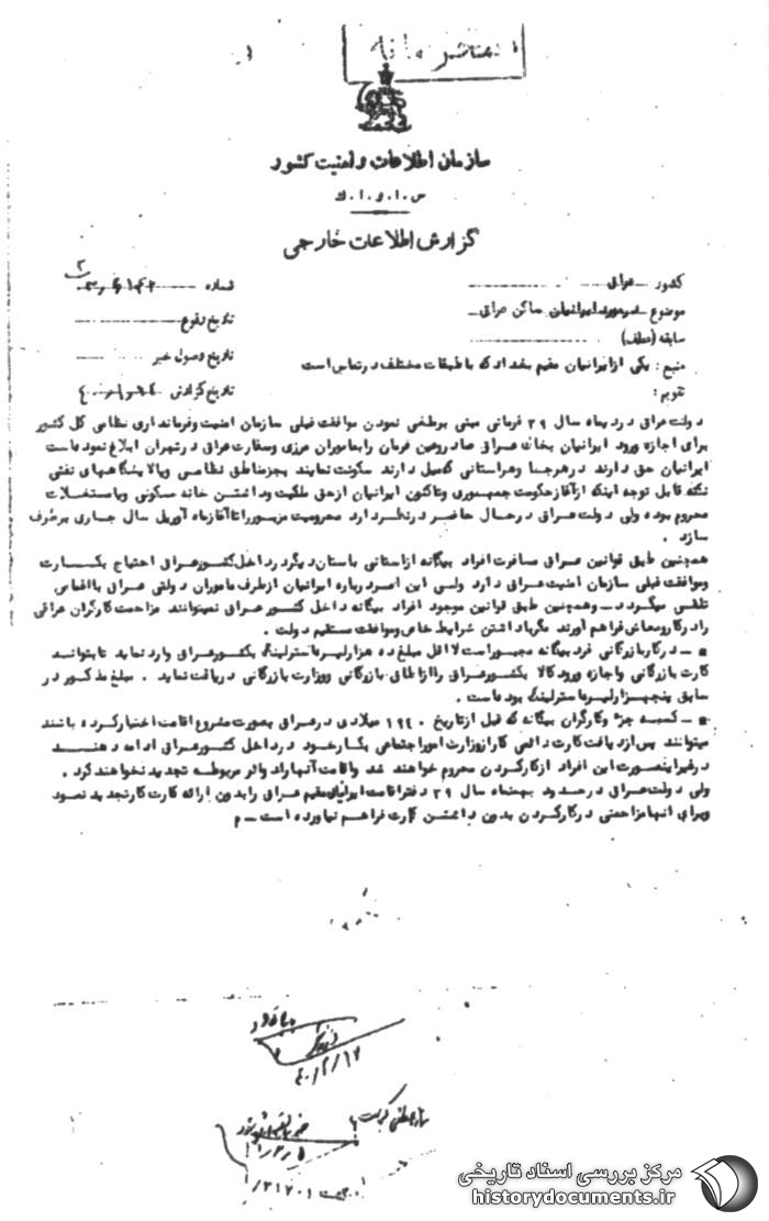 عراق صادر و عین فرمان را به مأموران مرزی و سفارت عراق در تهران ابلاغ