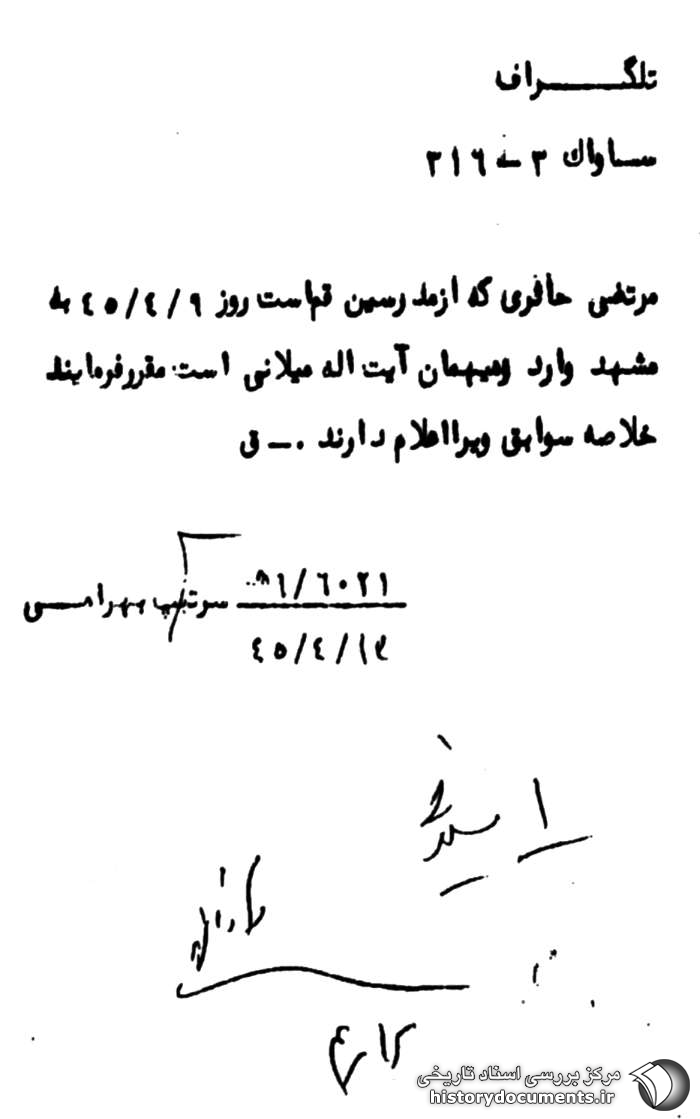 آیتالله العظمی سید محمدهادی میلانی به روایت اسناد ساواک - جلد دوم صفحه 461