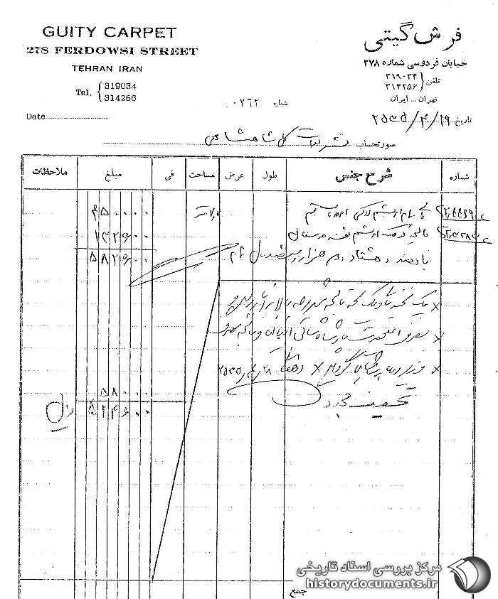 یک تخته قالی و یک تخته قالیچه مشروحه بالا به انبار رسید مصرف اعلیحضرت پادشاه [ناخوانا] ایتالیا و قالیچه مصرف وزیر دربار شاهنشاهی گردید.