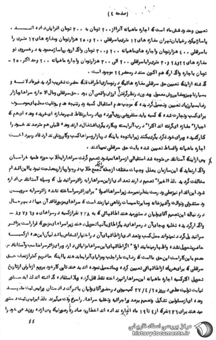 4ـ اجاره ماهیانه هر یک از مغازه های بازار مزبور 5001 قیمت سرقفلی است.
