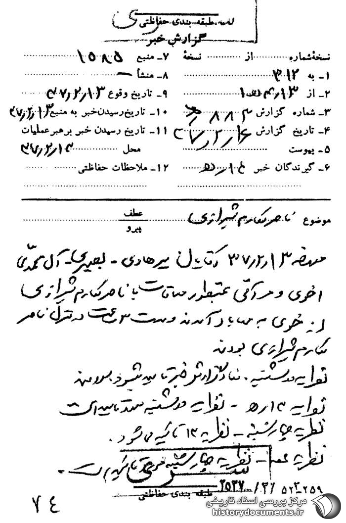 مورخه 13 /2 /37 آقایان میرهادی. بصیری1. آل محمّدی. اخوی و مرآتی به منظور ملاقات با ناصر مکارم شیرازی از خوی به مهاباد آمدند و مدت 3 ساعت در منزل ناصر مکارم شیرازی بودند.