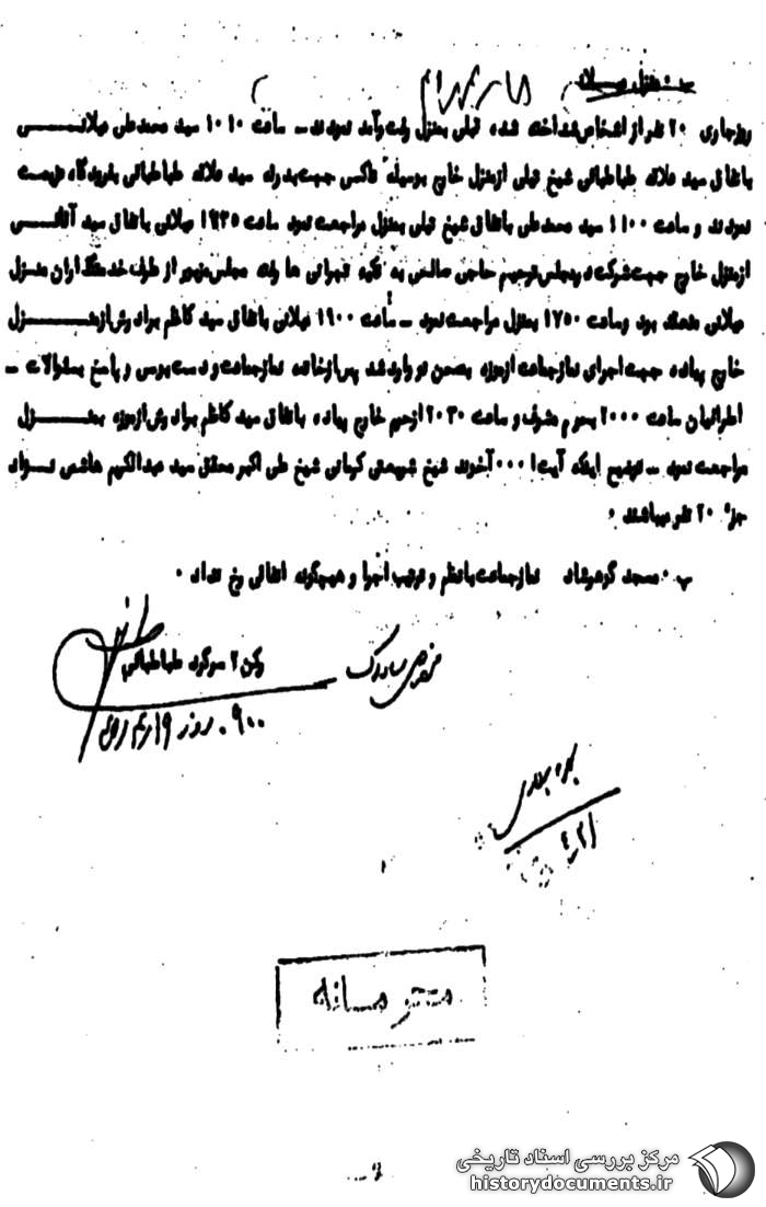 و ساعت 2030 از حرم خارج پیاده به اتفاق سیدکاظم برادرش از موزه به منزل