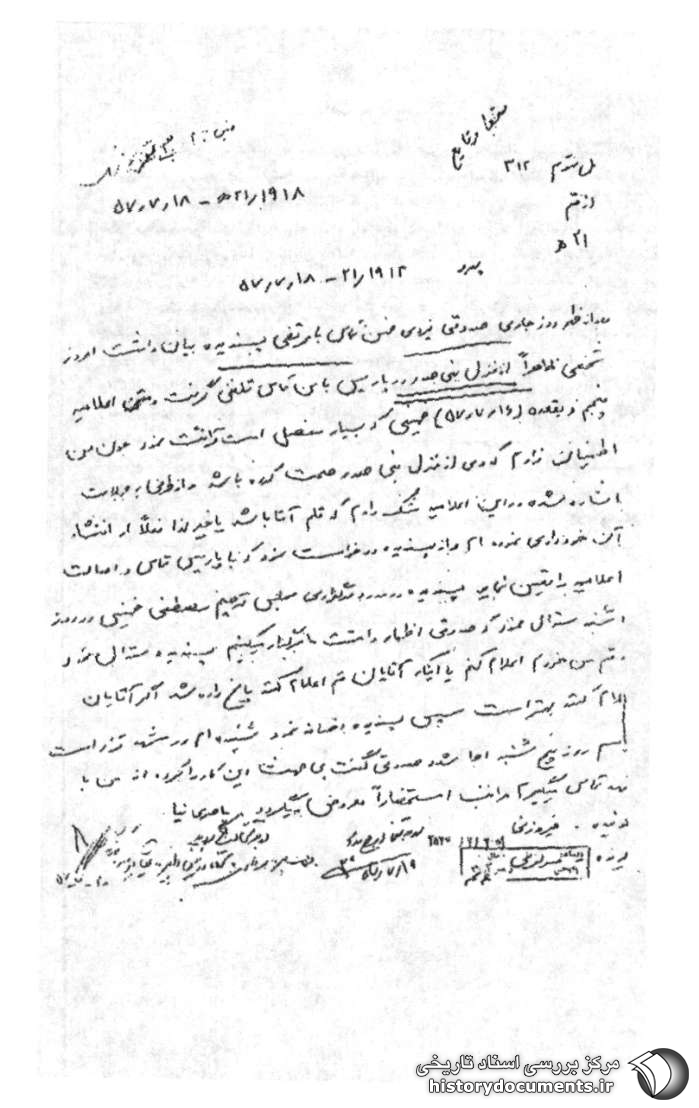 از: قم ۲۱/ ه تاریخ: ۱۸/۷/۵۷