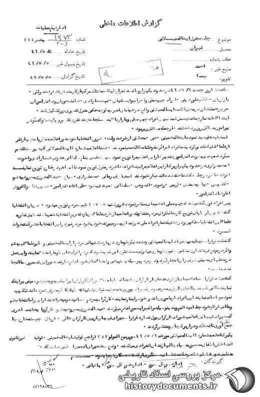 1. شایعه تبعید نمودن آیتالله خمینی، قمی [و] محلاتی از طرف دولت، شروع انتخابات و صدور اعلامیه نظریات چهار نفر از علما، که قبلاً تقدیم گردیده، افراد آن را گرفته و علناً مطالعه مینمودند. ضمناً اعلامیه شماره ۲ آیتالله میلانی که به پیوست تقدیم میگردد، مهدی بشره دانشآموز چند برگ از این اعلامیه را توزیع نمود سپس شخصی به نام سلطانی، عضو نهضت آزادی و اخوت.