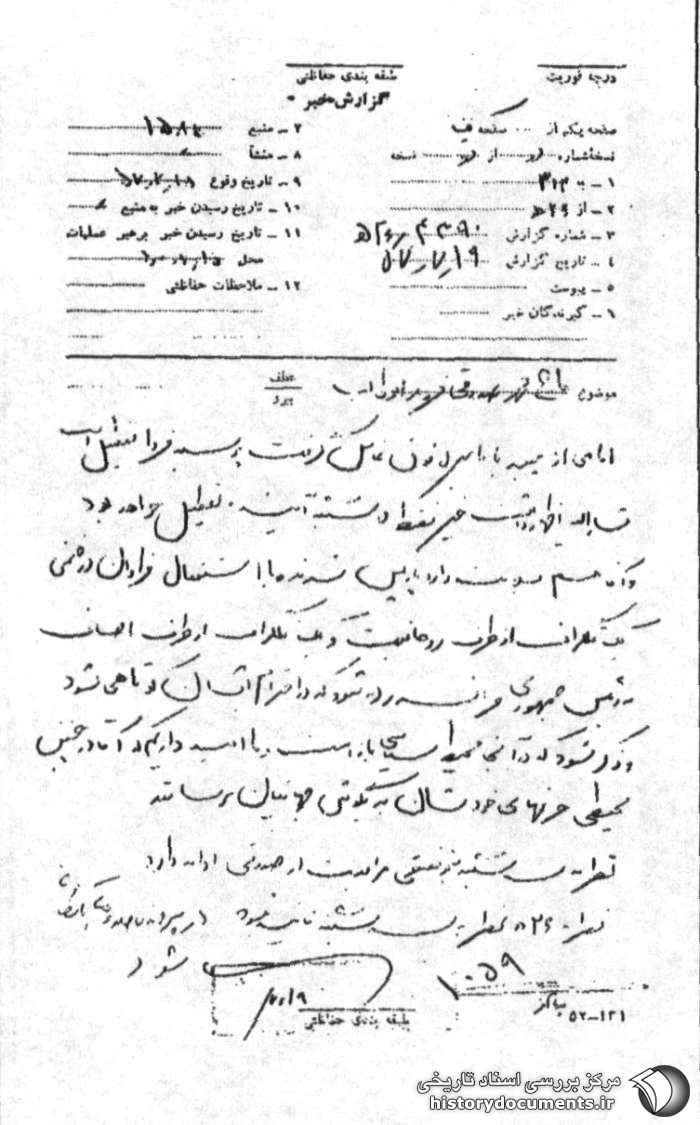 امامی از میبد با نامبرده فوق تماس گرفت پرسید فردا تعطیل است مشارالیه اظهار داشت: خیر فقط دوشنبه آینده تعطیل خواهد بود و آقا۱ هم به سلامت وارد پاریس شدند. با استقبال فراوان. در ضمن یک تلگراف از طرف روحانیت و یک تلگراف از طرف اصناف به رئیس جمهوری فرانسه زده شود که در احترام ایشان کوتاهی نشود و ذکر شود که در آنجا محیط سیاسی باز است و ما امیدواریم که آقا در چنین محیطی حرفهای خودشان را به گوش جهانیان برسانند.