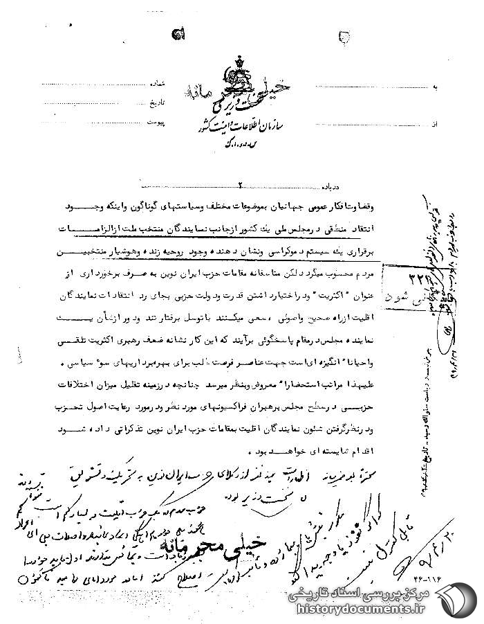 نظریه : با توجه به اینکه لزوم انتقاد اصولی و سازنده کرارا از جانب اعلیحضرت