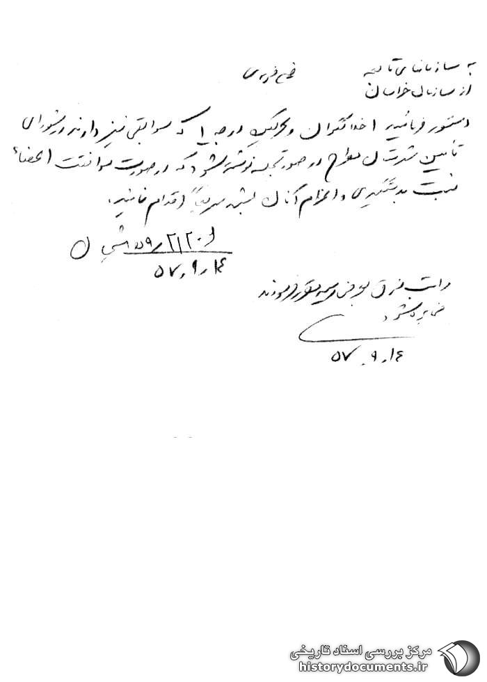 مراتب فوق به عرض رسید مقرر فرمودند مخابره شود. 14 /9 /57