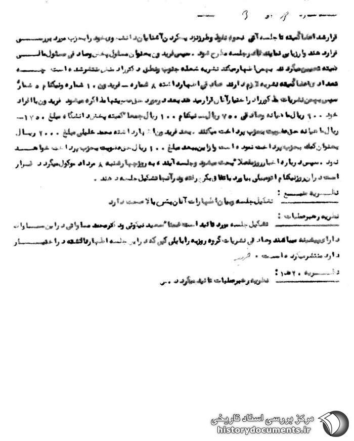 بعد فریدون اظهار داشته محمد خلیلی مبلغ 2000 ریال به عنوان کمک به حزب پرداخت نموده است و از این به بعد مبلغ 100 ریال حق عضویت به حزب پرداخت خواهد نمود.