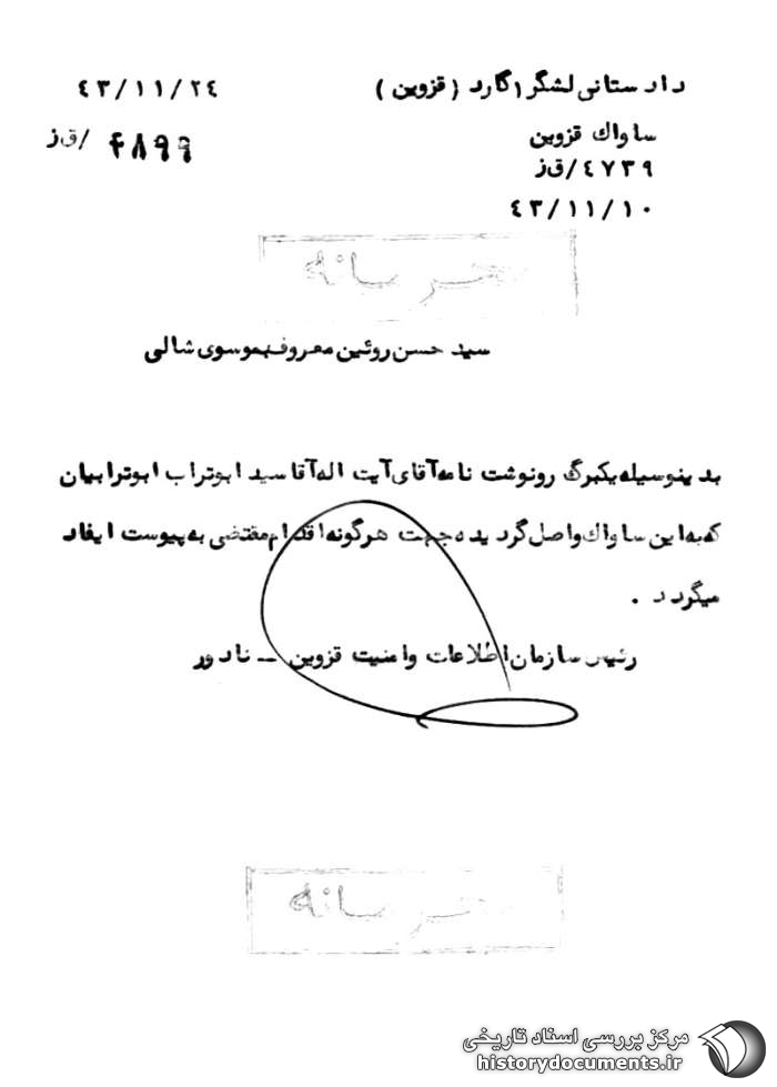 شماره: 4899 / قز تاریخ:24 /11 /1343