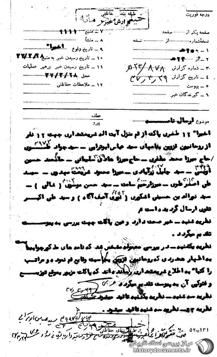 ضمناً فتوکپی گزارش خبر و نامه ضمیمه در پرونده سایر افراد سابقهدار بایگانی شود. عربی 29 / 3 / 37