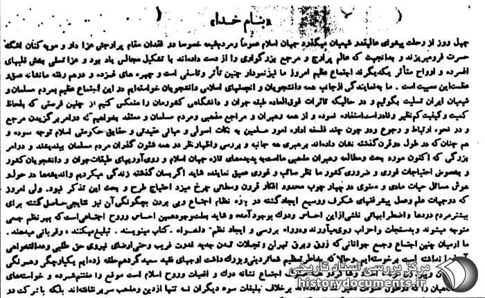 مسلمان بیندیشند و در امر بزرگی که اکنون مورد بحث و مطالعه رهبران مذهبی ما