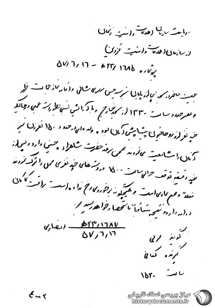 پیرو شماره 1685 / 23 ﻫ ـ 16 / 6 / 57