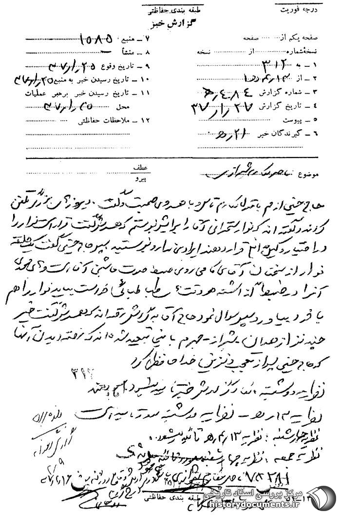 در گزارش وقایع روزانه مورخه 16 /2 /37 درج گردید. روحانی