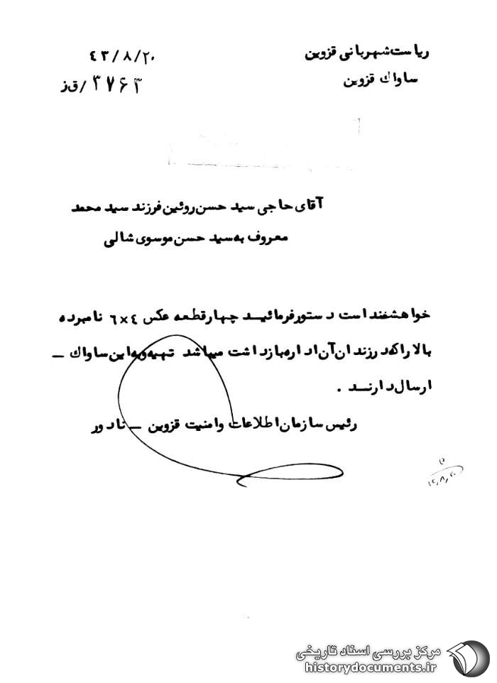 شماره: 3763 / قز تاریخ:20 /8 /1343