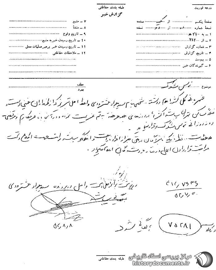 رونوشت برابر اصل است و اصل در پرونده سیدجواد هشترودی بایگانی میباشد. 8 /8 /52