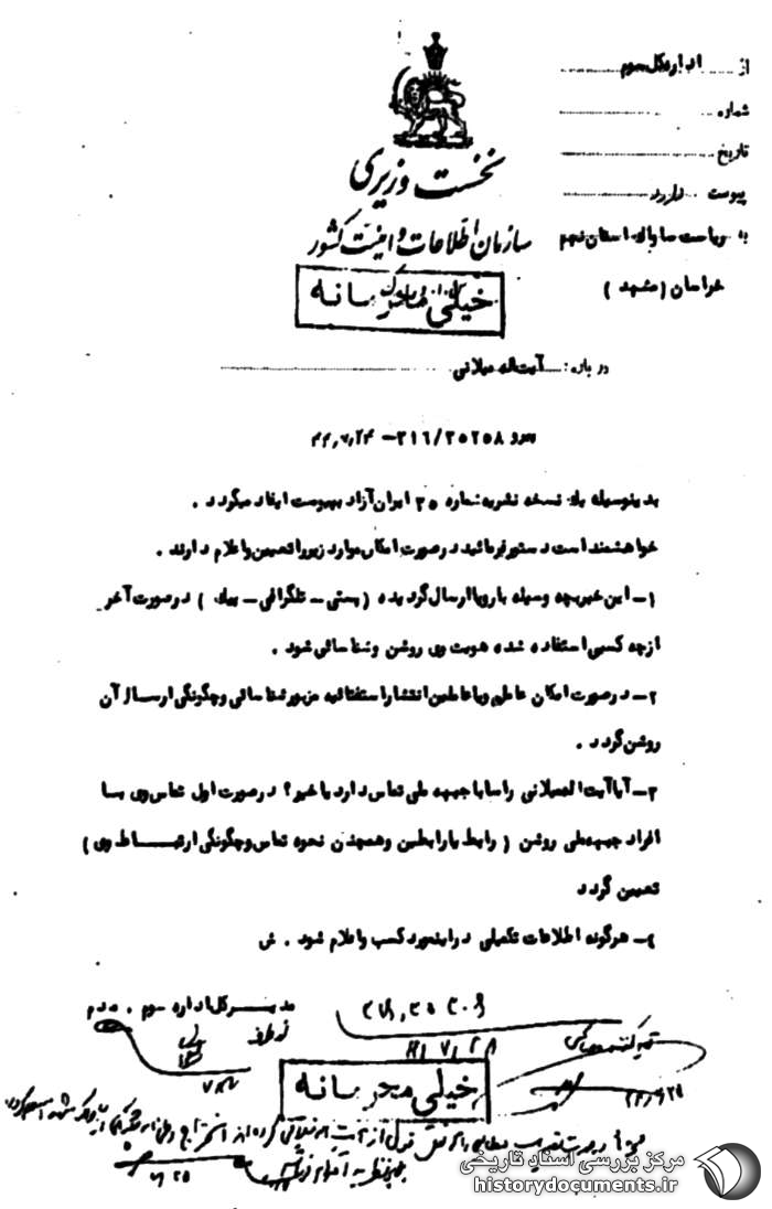 چگونگی از ساواک مشهد استعلام گردد 25 /7