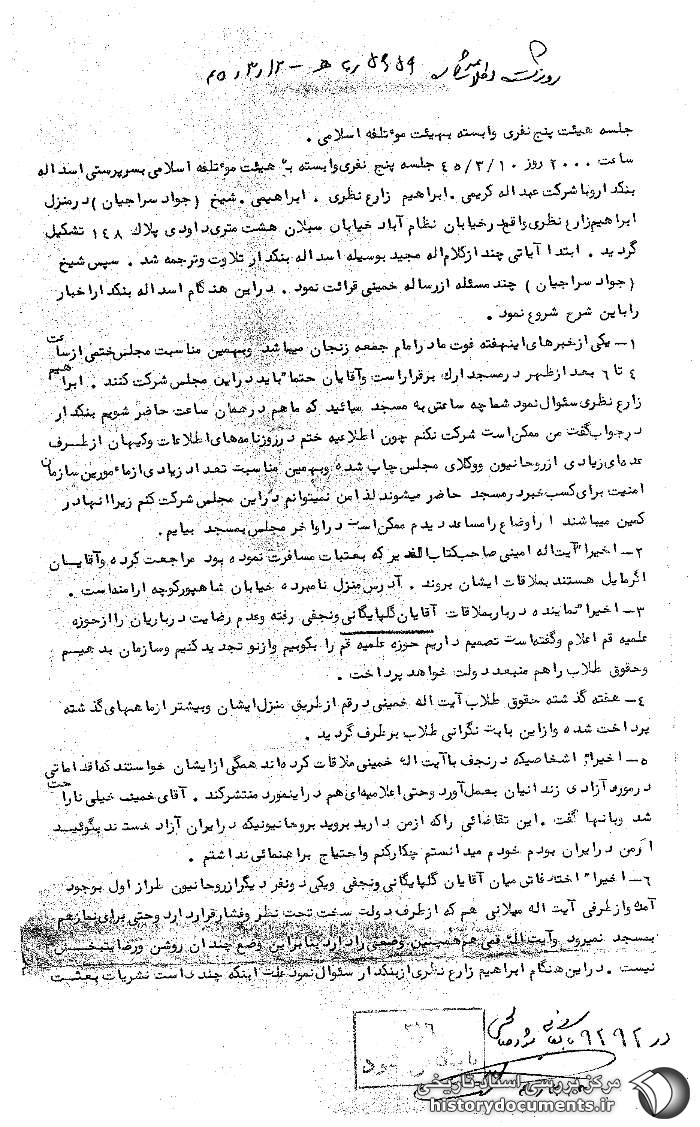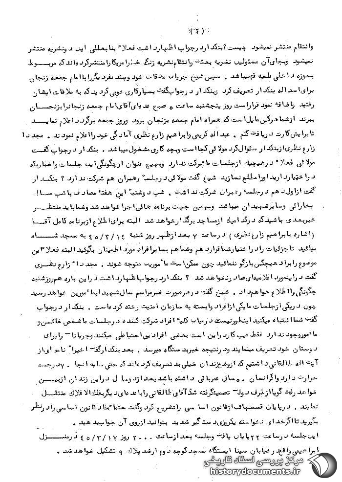 این جلسه در ساعت 22 پایان یافت و جلسه بعد از ساعت 2000 روز 17 /3 /45 در منزل