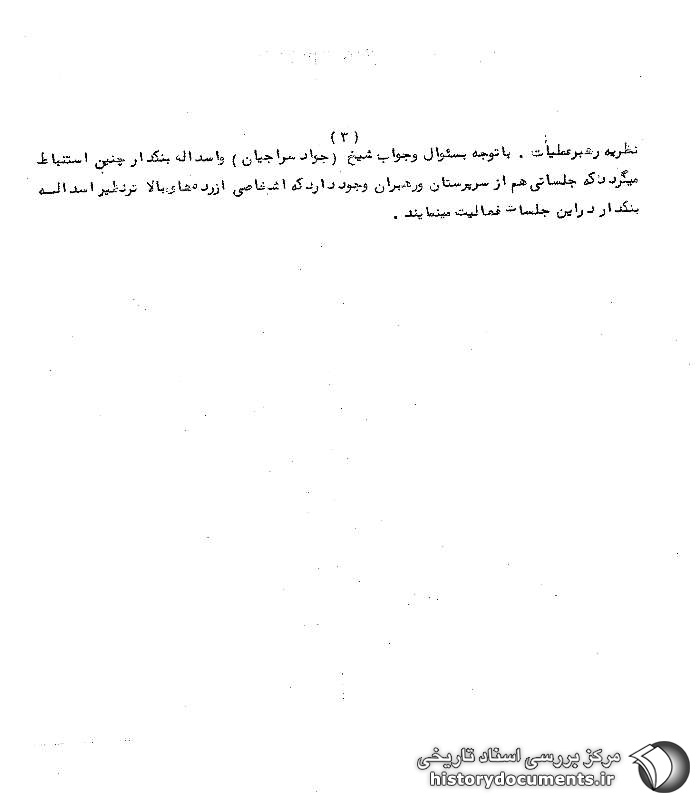 نخواهد شد؟ بنکدار در جواب اظهار داشت در این باره هم روز شنبه چگونگی را اطلاع خواهم