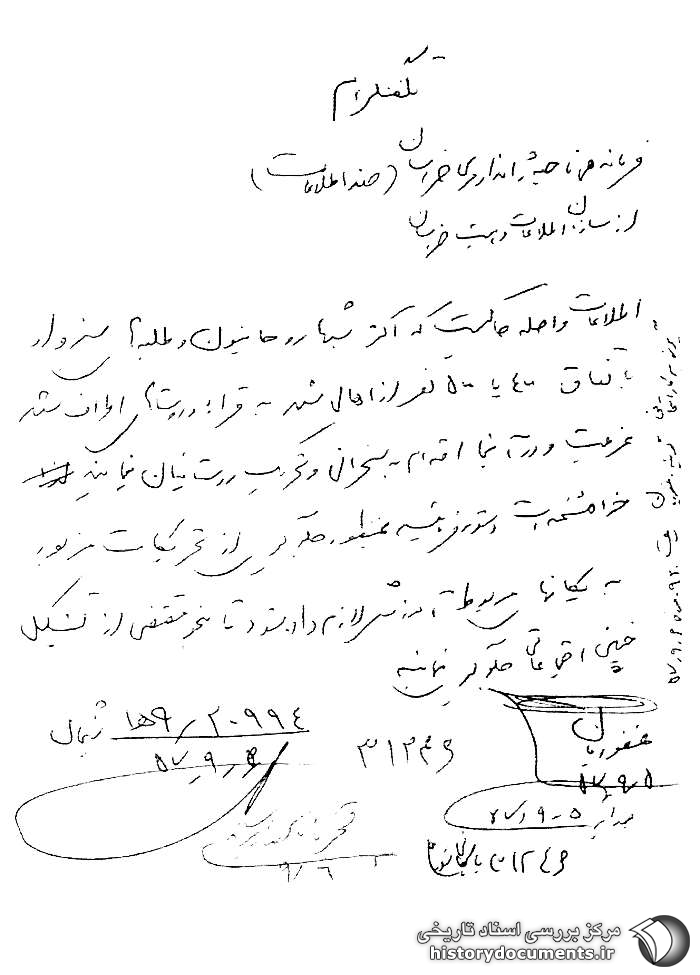 به: فرماندهی ناحیه ژاندارمری خراسان (ضداطلاعات)