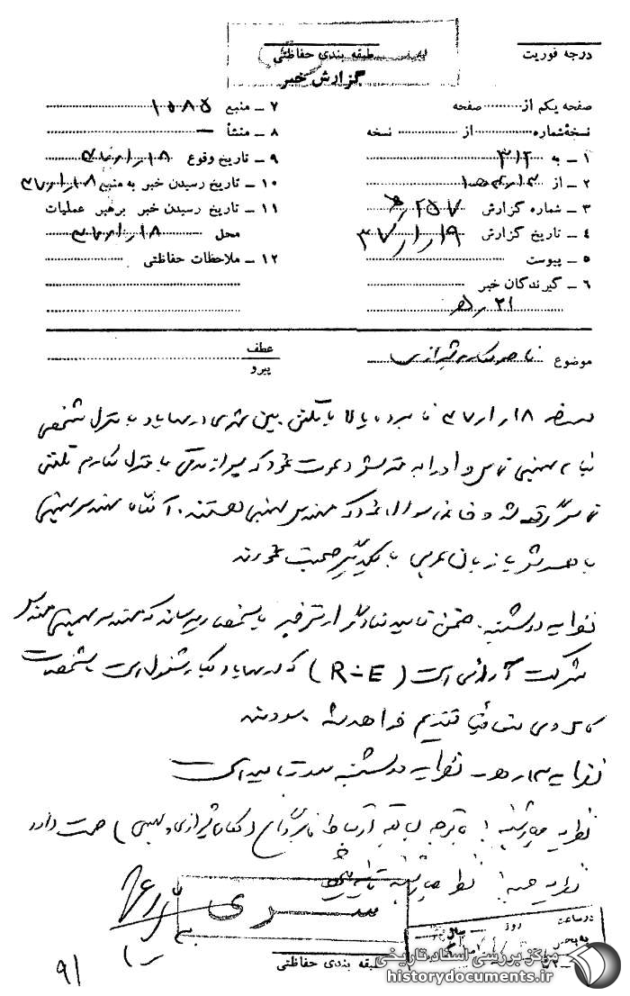 نظریه دوشنبه. ضمن تأیید مفاد گزارش خبر به استحضار میرساند مهندس بهمنی مهندس شرکت آرئی (R- E) که در مهاباد به کار مشغول است. مشخصات کامل وی متعاقباً تقدیم خواهد شد.