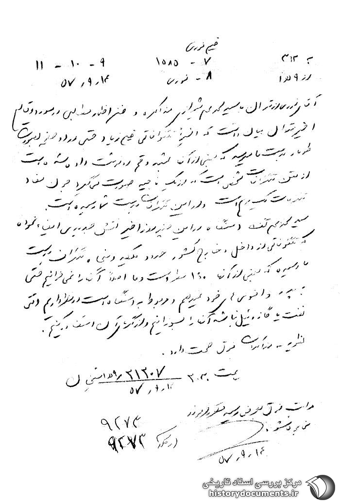 مراتب فوق به عرض رسید که فرمودند مخابره شود. 14 /9 /57
