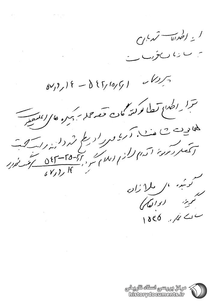 به: سازمان خراسان شماره: 2 /2 /25 /542