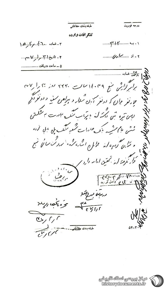در بولتن درج شود ثابتی 2 /2 /37 محترماً به استحضار میرساند 2 /2 /37 در بولتن درج شد برای بهرهبرداری به استحضار ریاست دایرهی عملیات برسد [ناخوانا] 3 /2 /37