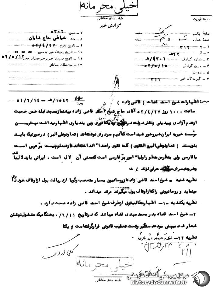 موضوع: اظهارات شیخ احمد قضات (قاضی زاده)