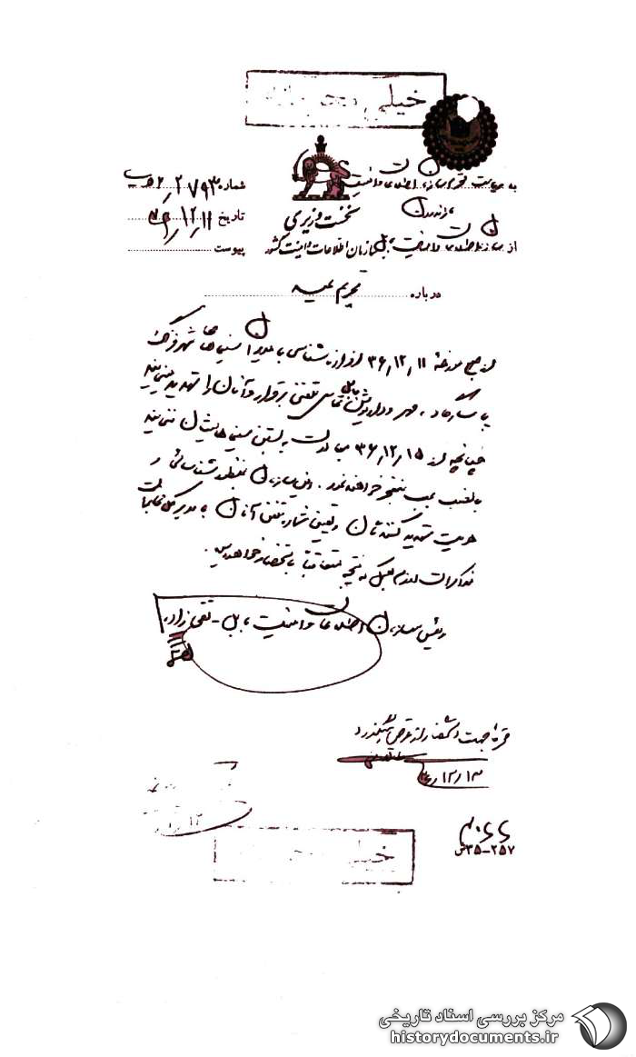 محترماً جهت استحضار از عرض میگذرد طالقانی 13 /12 /36 3066