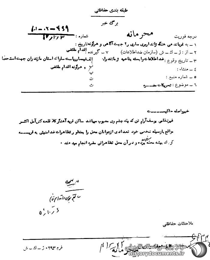 به: فرماندهی هنگ ژاندارمری ساری ر2 جهت آگاهی و هرگونه اقدام مقتضی