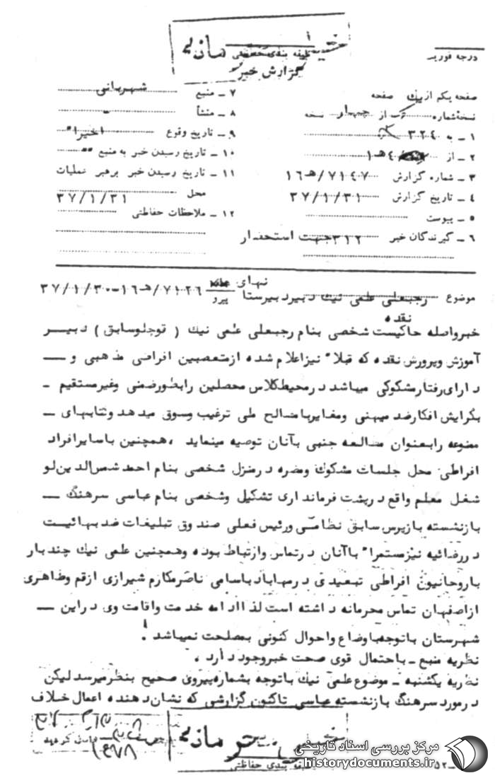 مهاباد باسامی ناصر مکارم شیرازی از قم و طاهری از اصفهان تماس محرمانه داشته