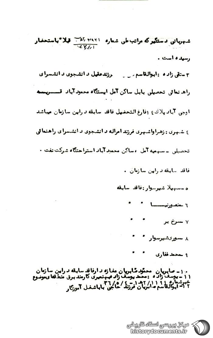 4- شهری: زهرا واشهری، فرزند امرالله، دانشجوی دانشسرای راهنمائی تحصیلی، سهمیه آمل، ساکن محمودآباد، استراحتگاه شرکت نفت، فاقد سابقه در این سازمان.